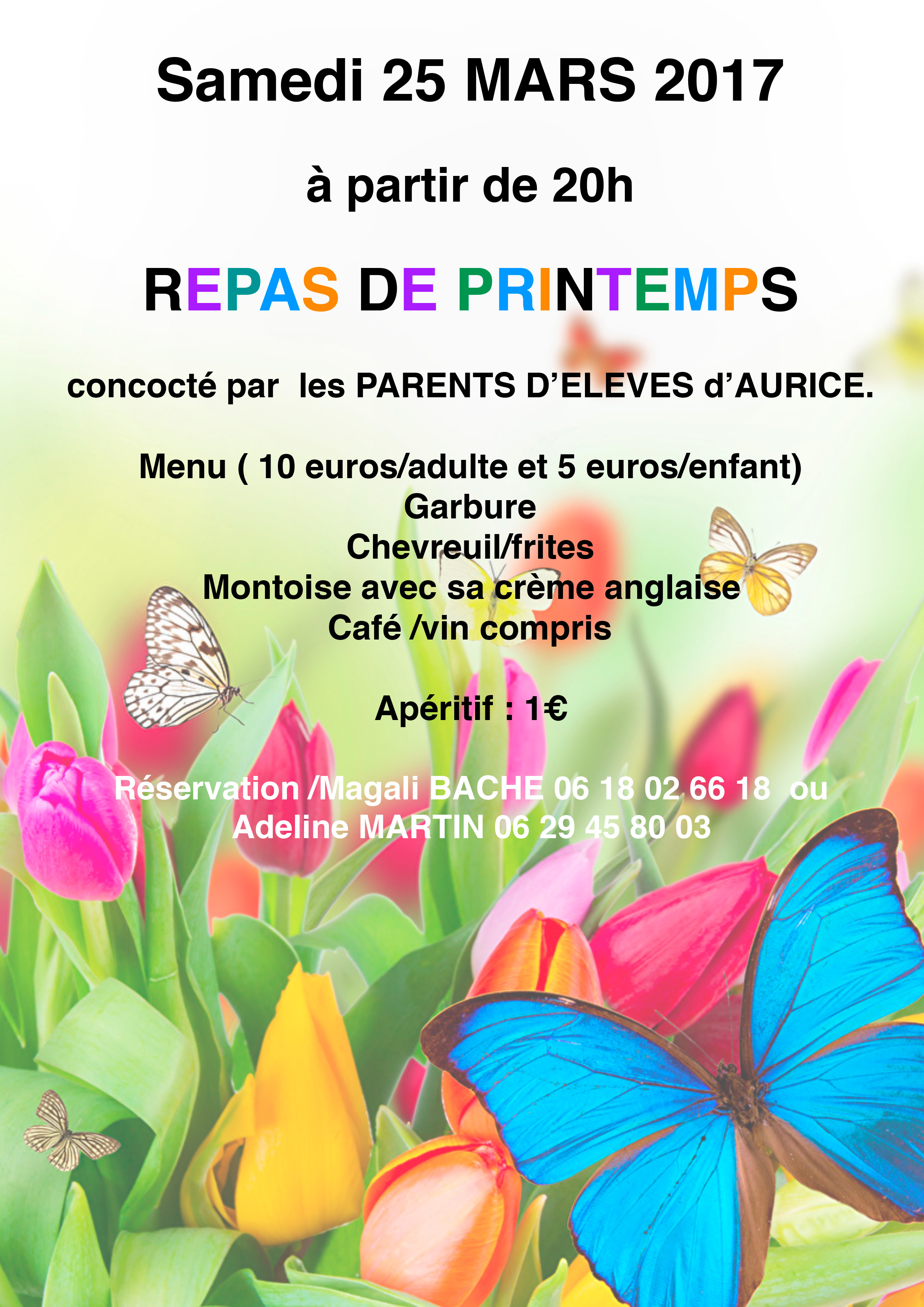 REPAS DE PRINTEMPS concocté par les PARENTS D’ELEVES d’AURICE.