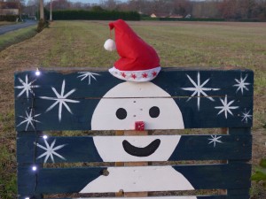 Construit avec des matériaux de récupération, de la peinture et quelques lumières, ce décor trône depuis le 15 décembre 2020 juste à l’entrée du quartier au bout de l’allée de platanes, on l’aperçoit même, le soir venu, au loin, depuis la route Cauna/Saint Sever.
