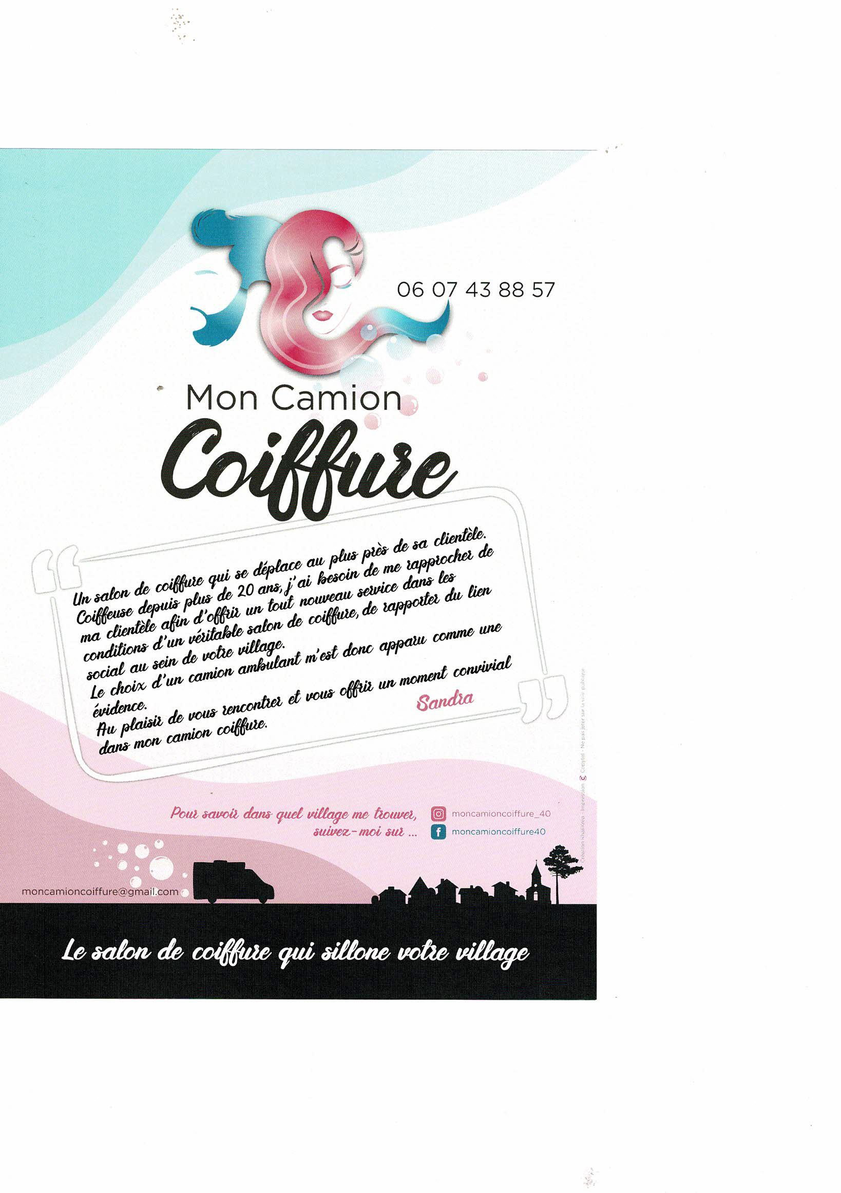 Mme Sandra CAPMARTIN, coiffeuse depuis plus de 20 ans, sera présente sur la place de la commune avec son camion coiffure, un nouveau service de proximité.