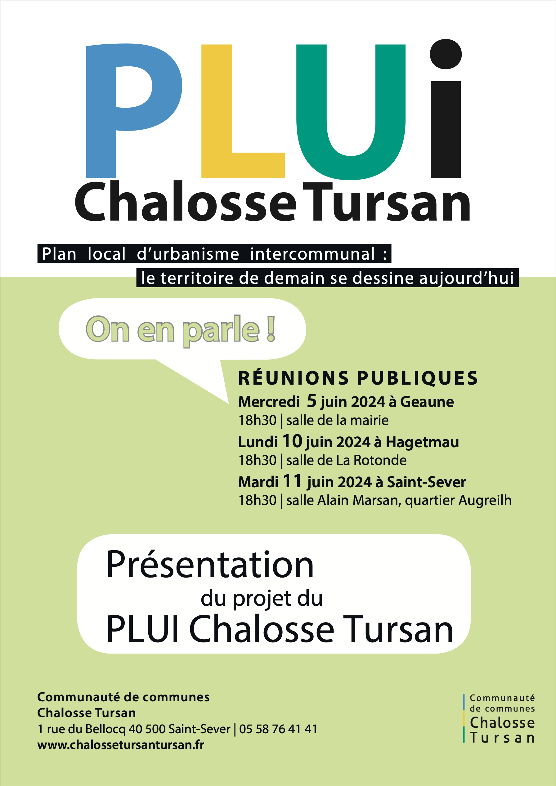 Dans le cadre de l’élaboration du PLUI Chalosse Tursan, avant l’arrêt de projet, trois réunions publiques vont être organisées.